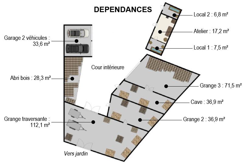 | Cave à vin (RDC de la maison principale) | 3 m² |