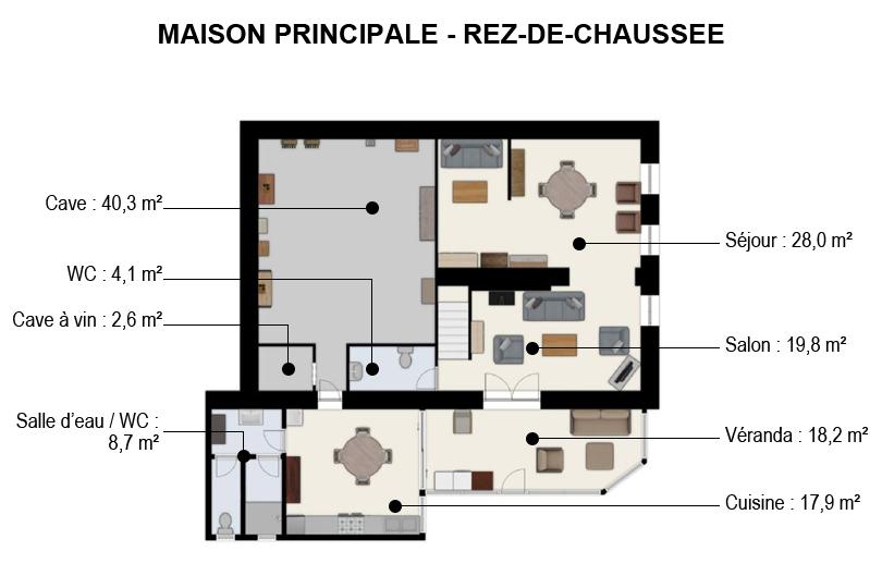 | Cave à vin (RDC de la maison principale) | 3 m² |